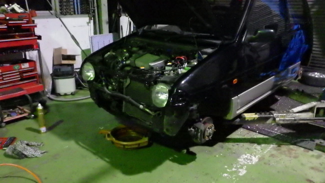 これが功を奏し試乗した感想も良好というコトで足回りは完了したのですが、工場にポタポタと垂れ落ちたオイル跡。