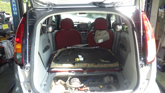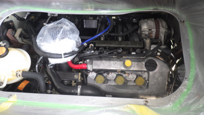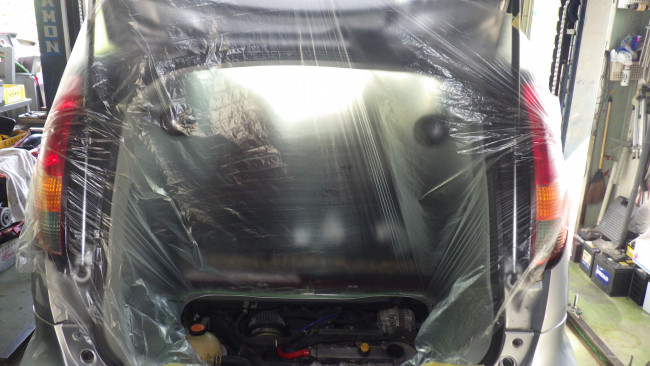 ほぼ室内と呼べる場所にエンジンルームがあるので養生が必要です。