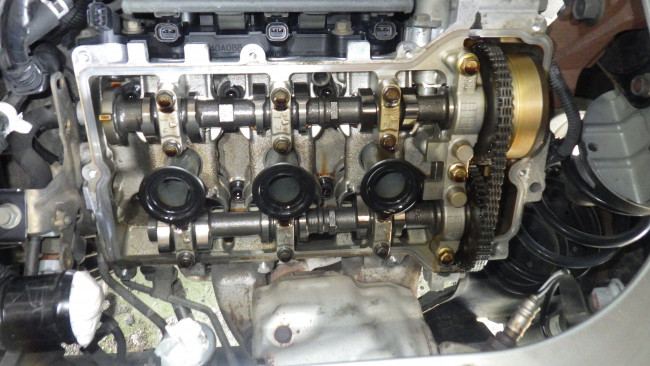 発熱量の違いなのかスズキのエンジンに比べ随分とキレイなエンジン内です。