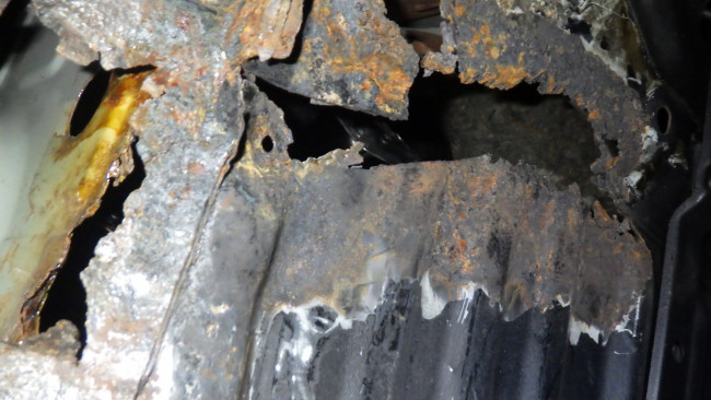 今回は鉄板による補強溶接のため樹脂は撤去しました。