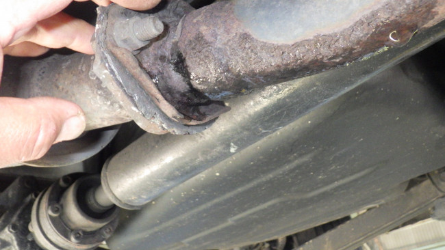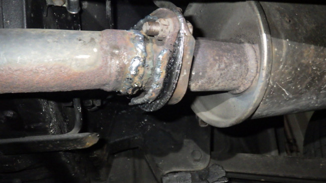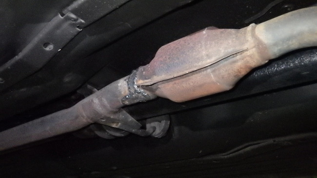 フロントパイプ中央と後ろの2箇所です。無事に塞がりました。
