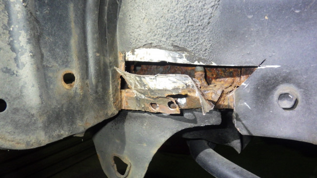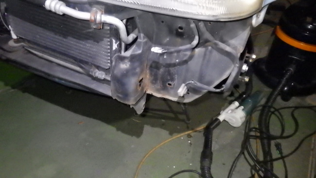 バンパーを外し裏側にも腐食穴が空いている事を確認。