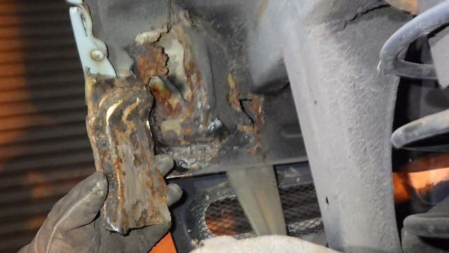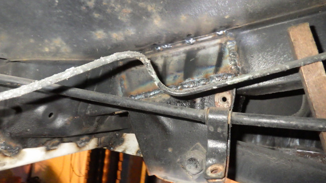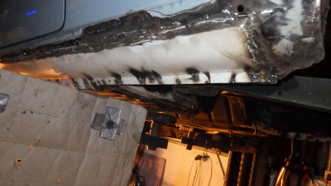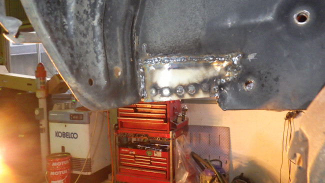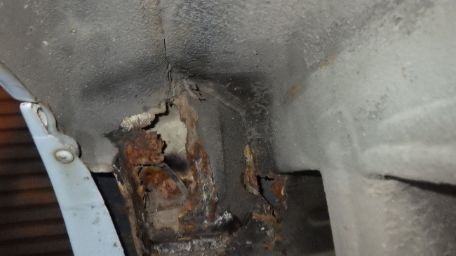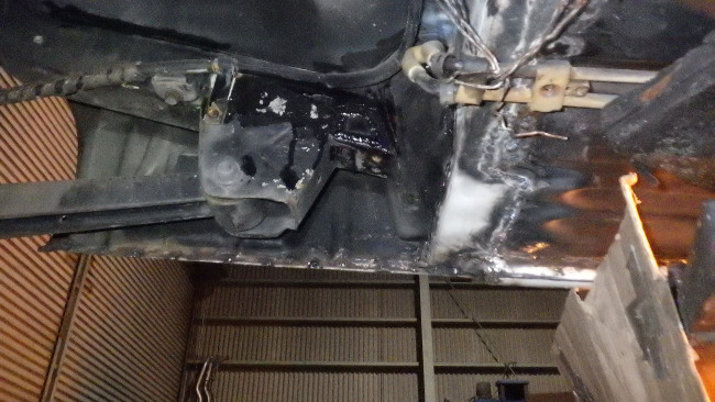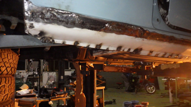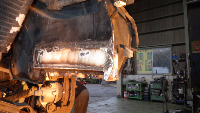 フロント左サイドメンバー補強。サイドシル左右補強。リヤパネル腐食穴確認。リヤサイドメンバー前方補強。