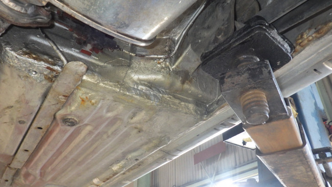 リヤ側のミッションマウント「トルクロッド」ブラケットの取り付け部も含めて修理していきます。