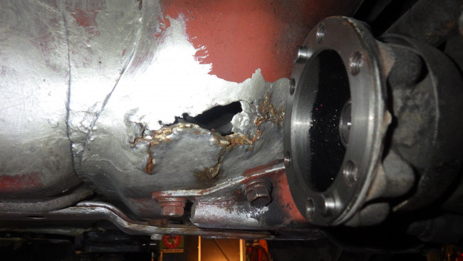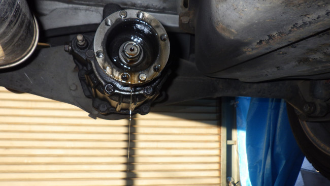 プロペラシャフトのフランジ部からのオイル漏れが発覚。