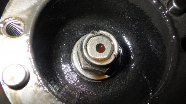 ナット中央に見える軸はビスカスなのですが、確か切り欠きがありカシメられる様になっていたと思うのですが、その部分がお目見えする前にナットが締まっている様に見受けられます。何にしても要点検箇所です。