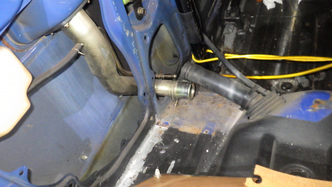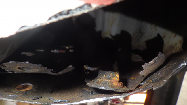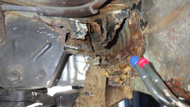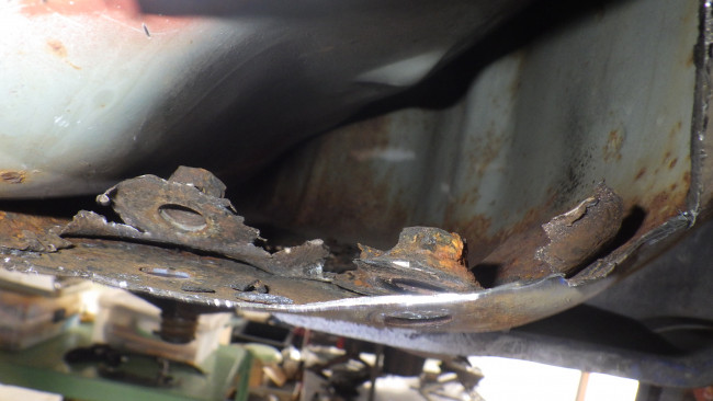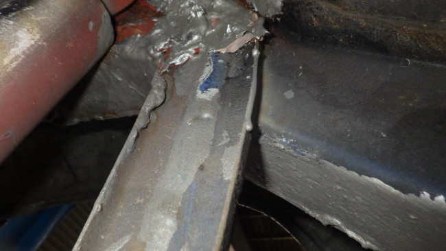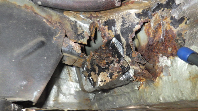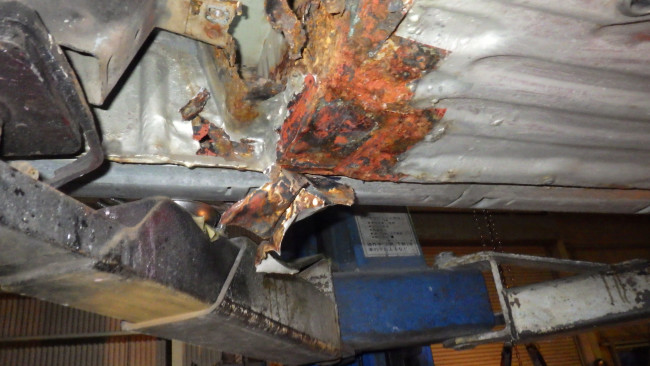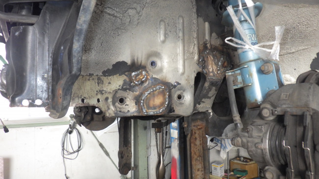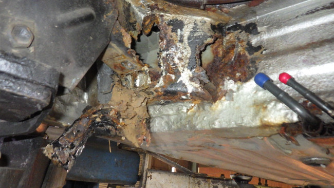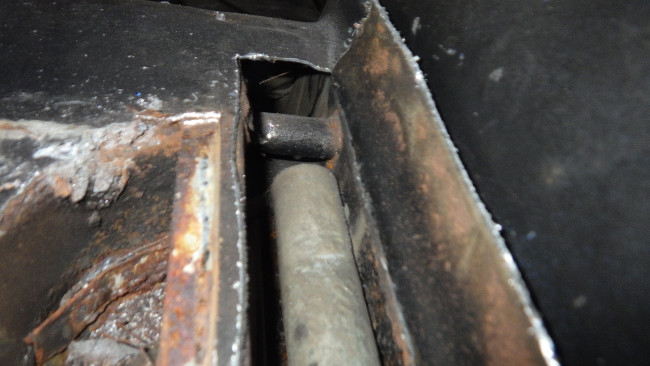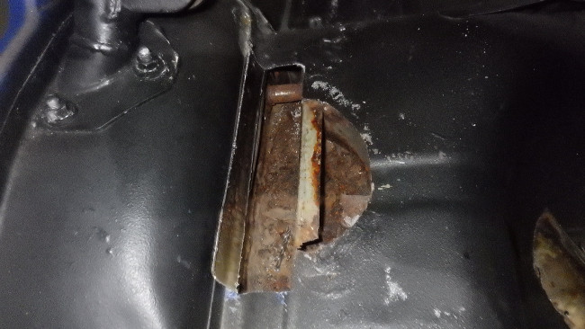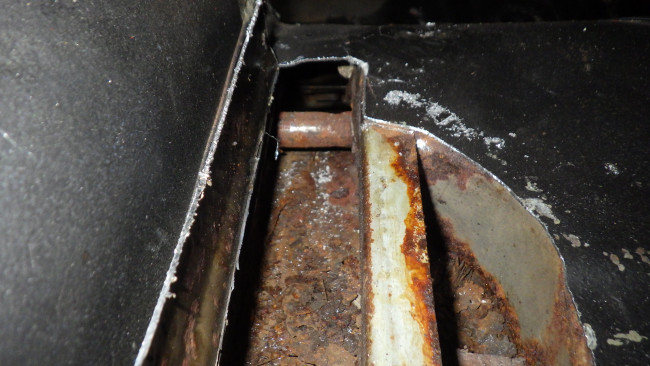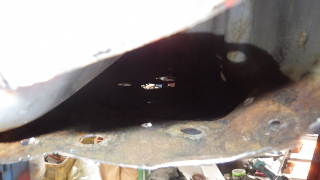 奥の水抜き穴の右側がサイドメンバーと重なる部分。