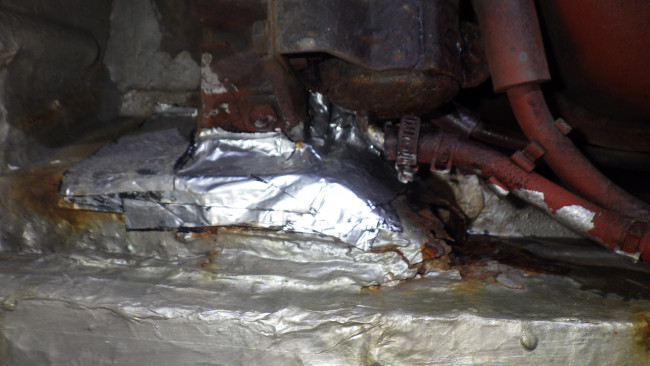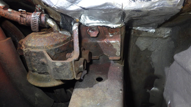 ダッシュパネルに重ね補強してあったミッションマウントブラケットを固定するナット側の鉄板も、こんな感じです。