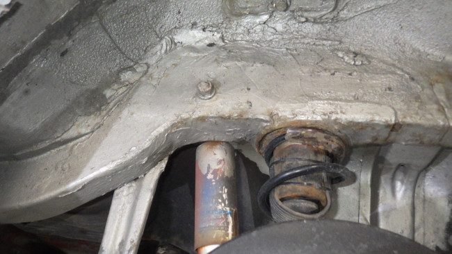 スプリングの衝撃を受け止めるために丸いパイプが溶接されていました。