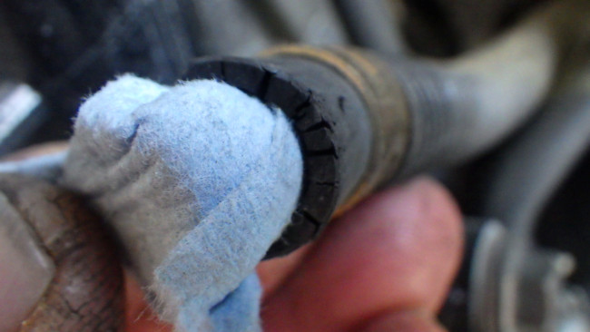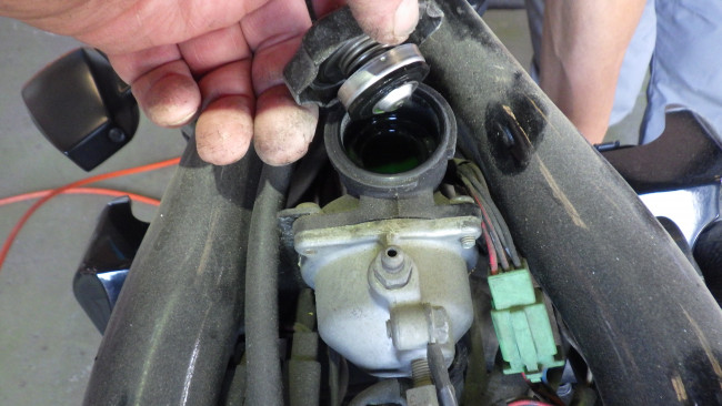 多分フューエルホースです。最終的に交換するのですが、この時は先端をカットししたか、滲みが無かったから、そのまま再使用したかのどちらかです。