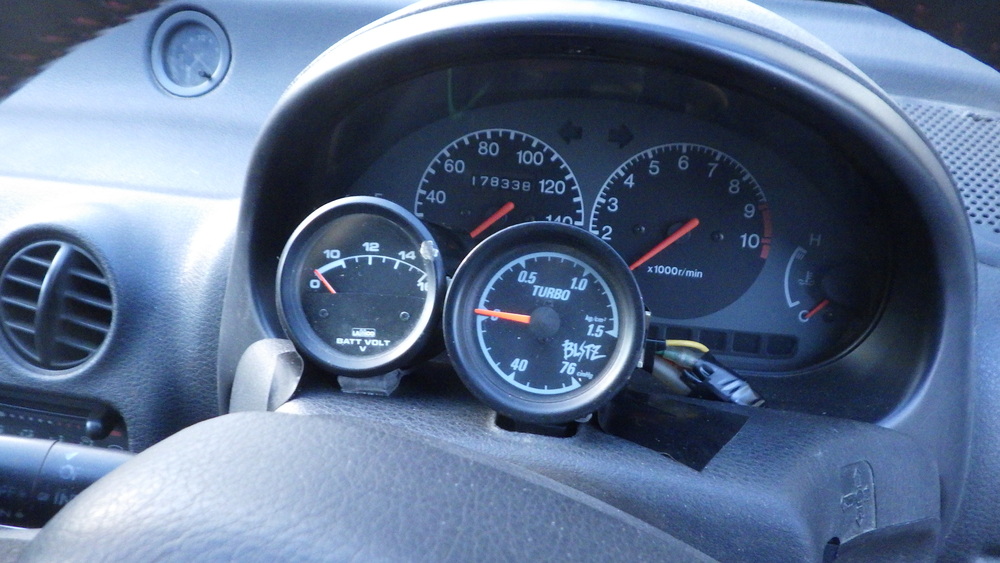 同時にパワーも下がる感じがしたので、電圧計とブースト計を取り付け試乗してみました。