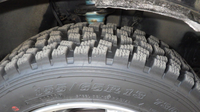 思わずベルトが滑りたくなるほどの積雪の中でも走行出来るのはラリースタッドレスのお陰です。スタッドレスとは次元の違う冬用のラリータイヤです。