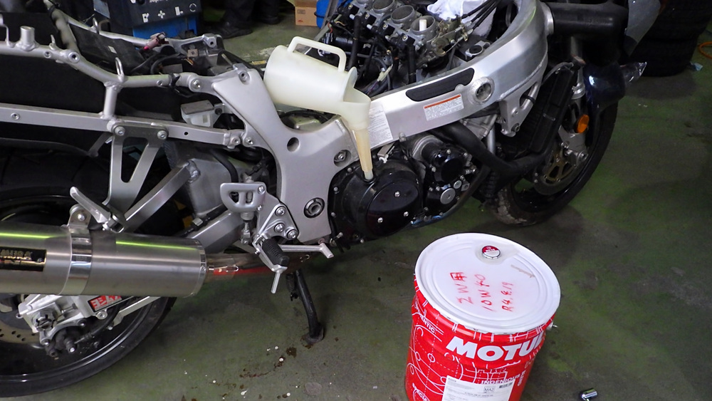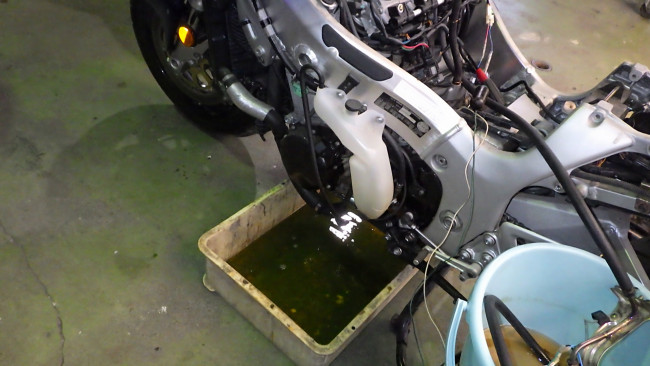 エンジンが無事に掛かったので、とりあえずエンジンオイルを交換。
