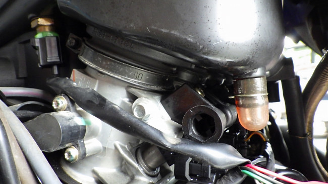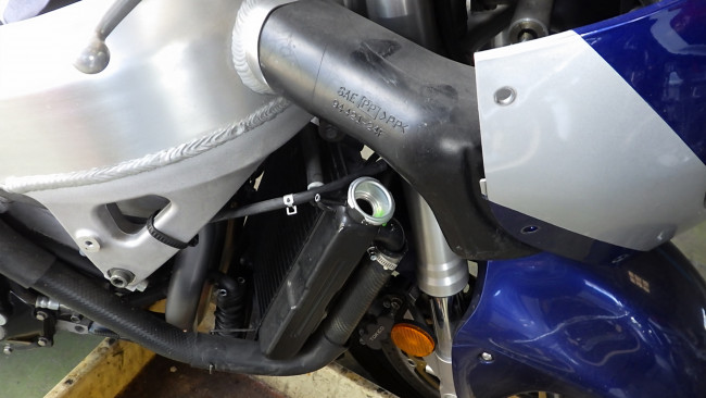 ブローバイホースの横にプレッシャセンサーが装着されます。