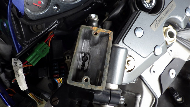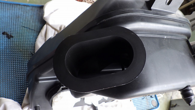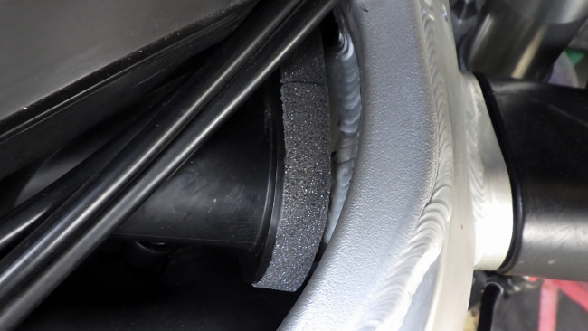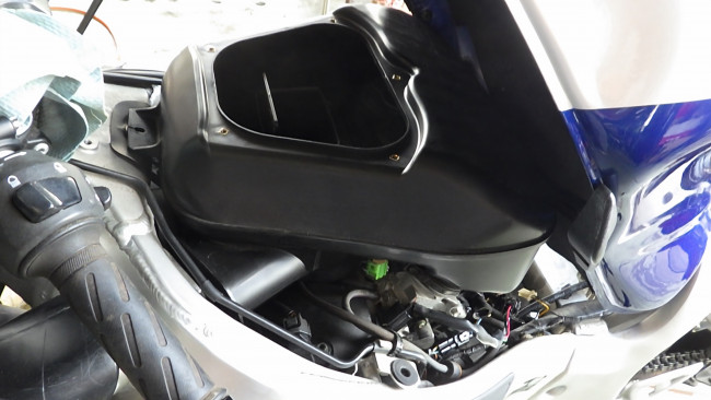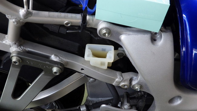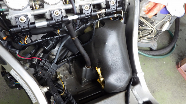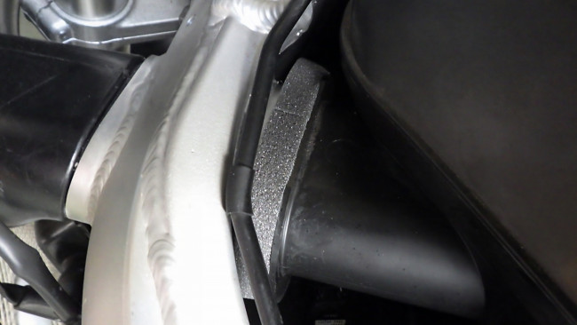 アッパカウルから導かれた空気は、貫通しているフレームを通るため、エアクリBOXがフレームに密着する必要があります。