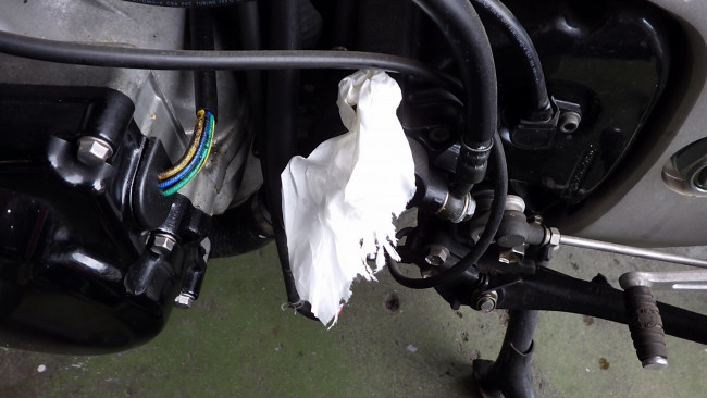 そんな事件があってからは、ティッシュペーパーで細長いこよりを作りブリーダに挿入!全ての作業が終わるまで挿しっぱなしとする事で、漏れの確認をしています。