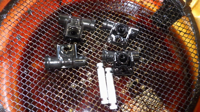 フルードに侵されてしっとりしていますが、水洗いだけでもかなりキレイになります。フルードは湿気を吸うと沸点が下がってしまうので、完全乾燥後に組み付けます。