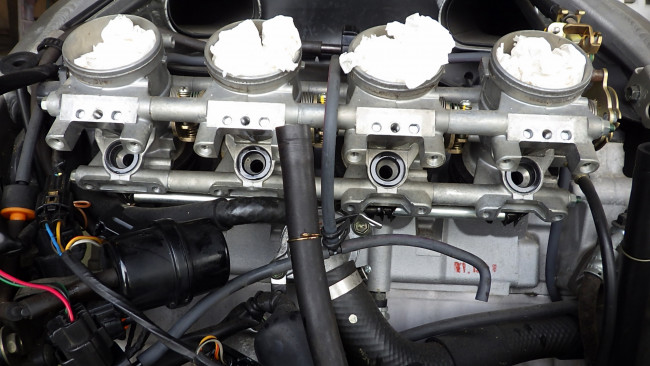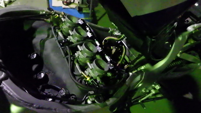 アルトは写真の様にクッションはインマニ「スロットルボデー」へ組付けておくのですが、どうもハヤブサは、この状態だと上手に進入出来ませんでした。