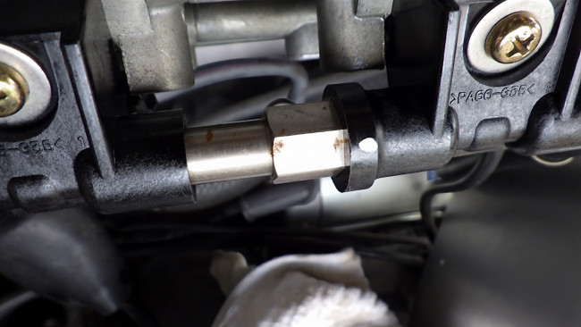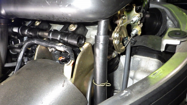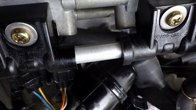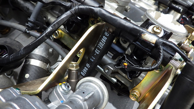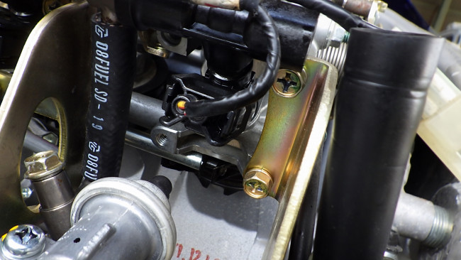 スロットルボデー側もボルトを通し、位置が決まったところでブラケットのボルトを固定。