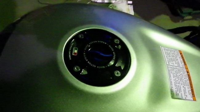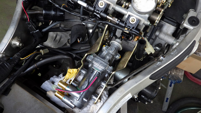 タンクを降ろした時にフューエルホースが潰れたり、擦れそうなところに干渉していないか十二分に確認し作業完了。