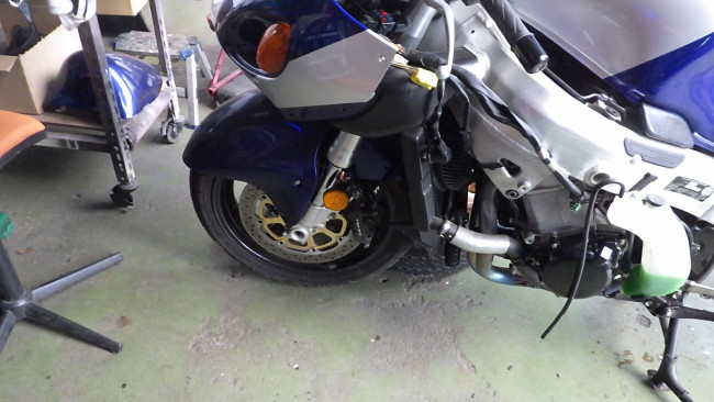 夜中掛けて抜けたエアー分、減ったクーラントを補充しエンジン始動。