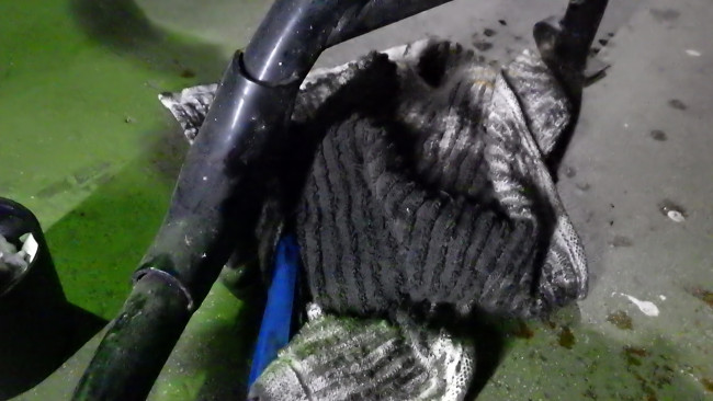 洗浄剤を拭き取ったウェスが真っ黒です。