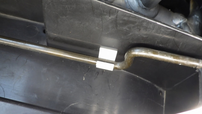 1本は空気の出入り口で、もう1本がガソリンをこぼしてしまった時のドレンパイプです。