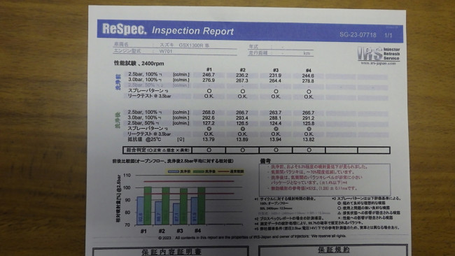 今回、成績表をもらっているので、その微妙な噴射量の違いが明確に分かっている状況です。