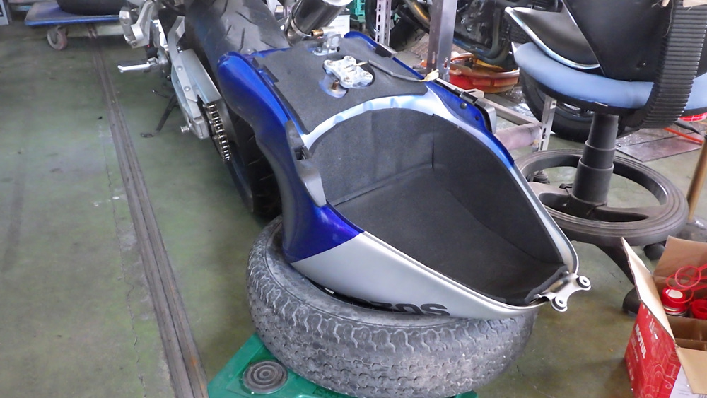 不動車の修理で預かったハヤブサでしたが、フューエルタンクキャップが開かないところから始まりました。