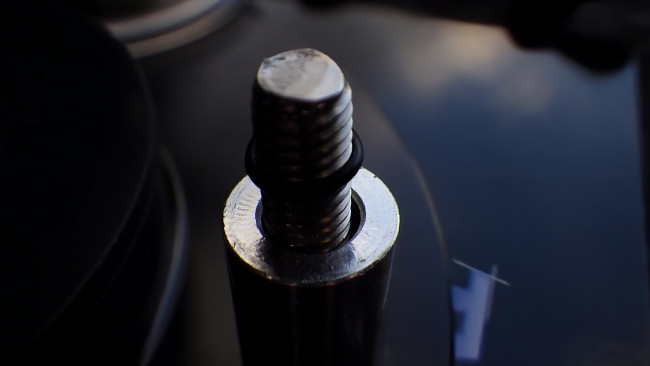 キレイなレベルゲージに新品のOリングを装着し取り付けます。