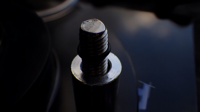固定ボルトに新品のガスケットを組み付け。