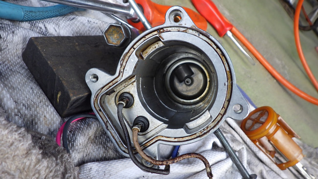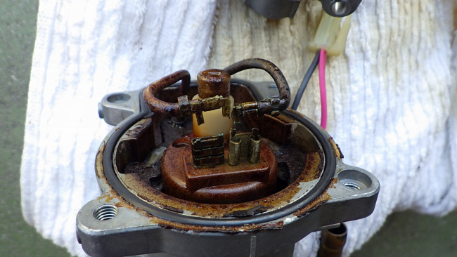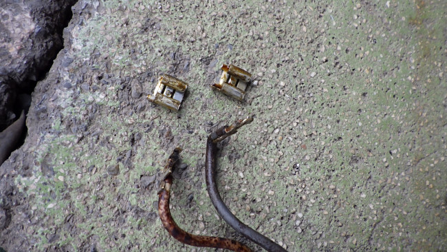 レギュレーターが合体しているキャップを外すと配線の端子が何かに侵されて破損している姿が目に飛び込んできました。