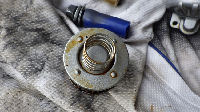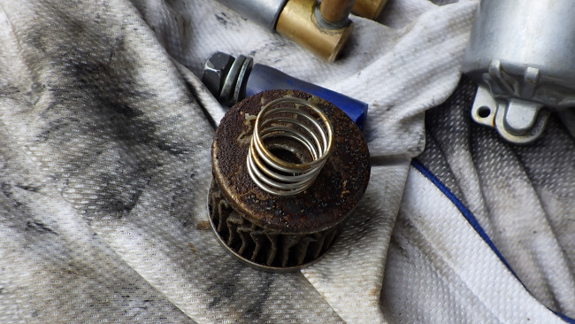 フィルターに開いた穴部分にスプリングが組み付けられていましたが・・・