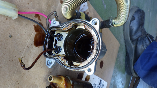 中途半端にバラしてあったポンプユニット。捨てるのも勿体ないので再利用出来る様に分解を進めてみました。