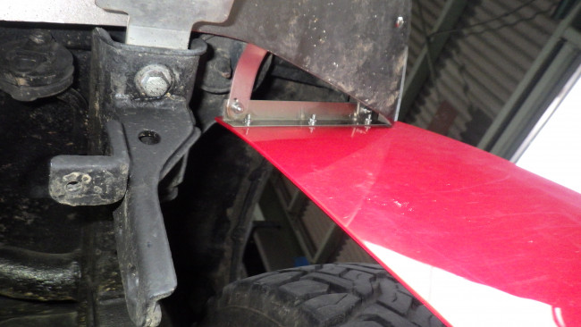 既存のボルトやステーを組み合わせてドロヨケを組付けて行きます。