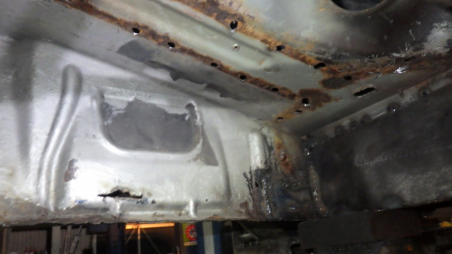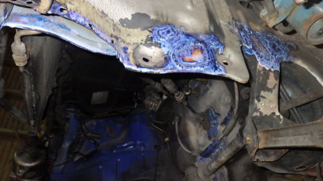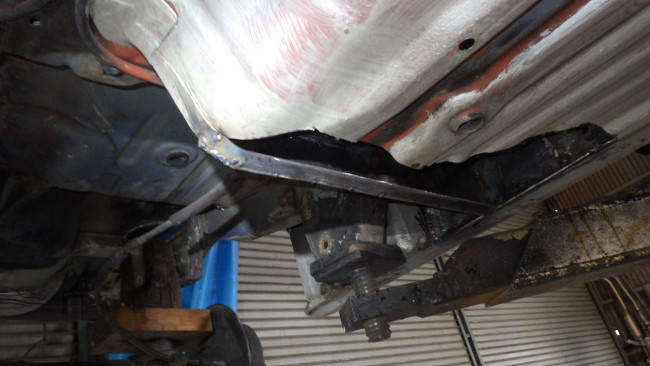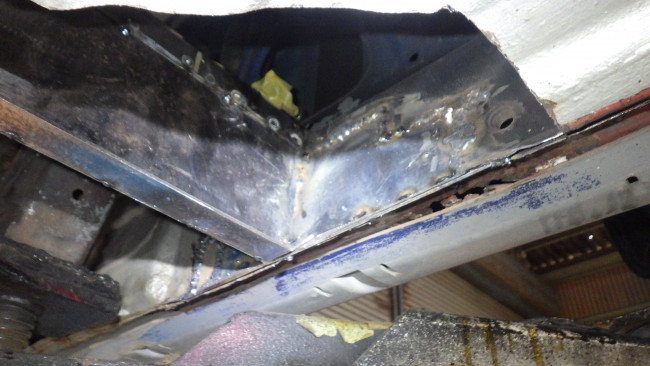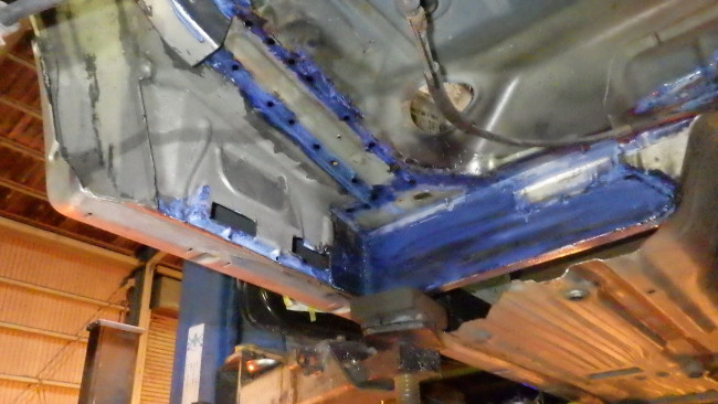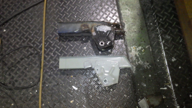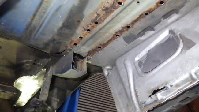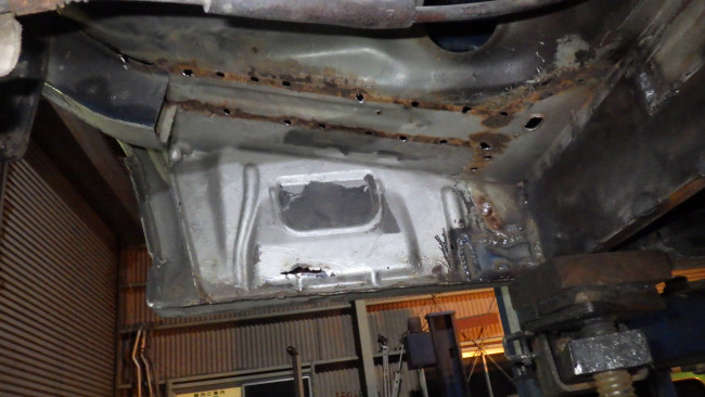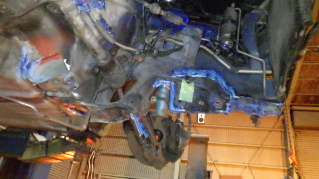 溶接補強し、リフトの足を掛け直し、サイドメンバーの補修に入ります。