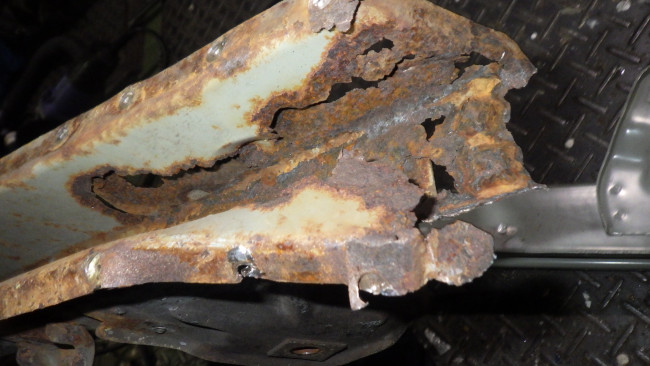 トレーリングアーム装着部分のブラケットが重なる箇所も腐食が酷いです。