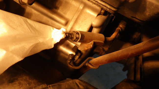 入庫時に野村さんから言われていたので、エンジンを掛ける前にエアー抜きだけでも実施して様子を見たかったのですが、レリーズシリンダーが見当たらない・・・