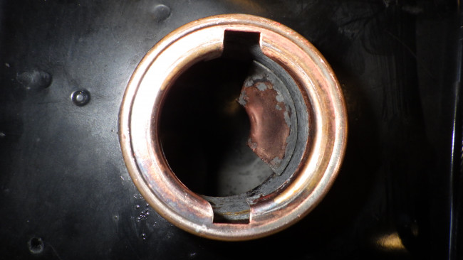 フューエルフィラーキャップ装着付近は真鍮なのか、銅色しているところにはなさかじいの銀色が付着している様にも見えます。