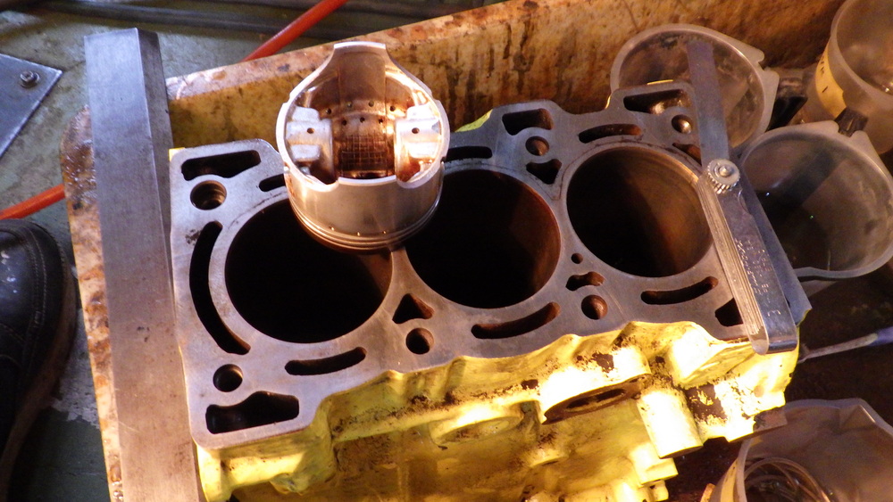 本来とは違う箇所での測定ですが、シリンダー壁の摩耗分をプラスすればイコールとなるので、水平セットを重視した方法で測定。