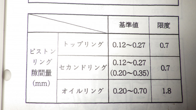 意外とバラつきがあった事は意外でしたが、その中でもシリンダ壁の摩耗分をプラスすれば基準の限度を超える1番リングを発見!