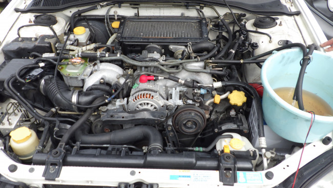 入庫時の不調など嘘の様な雄たけびを上げながらファーストアイドルを開始したEJ20エンジン。
