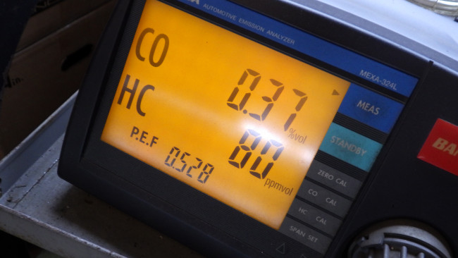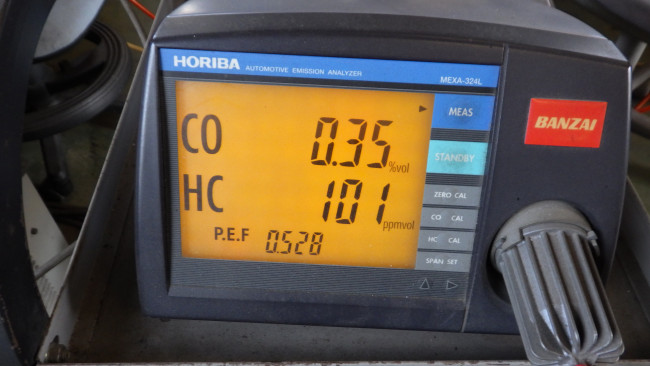 水温が上がり通常アイドルに戻ってから十数分後の排気ガス測定値。